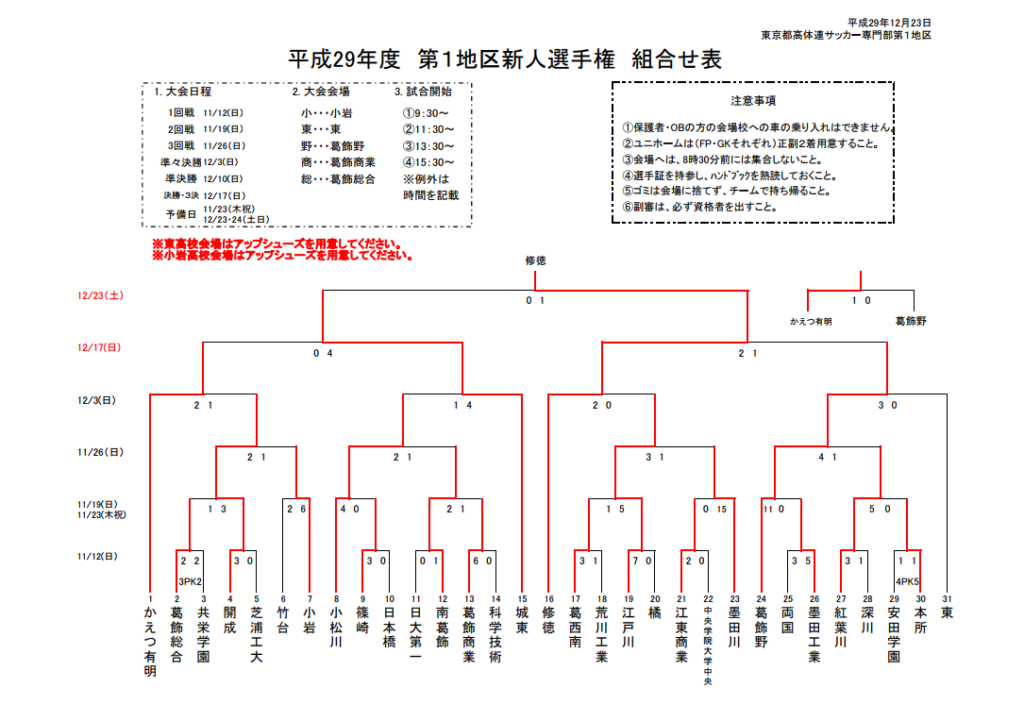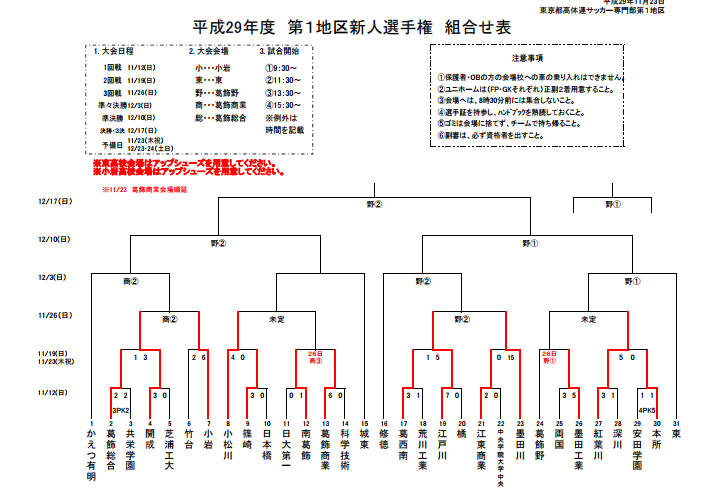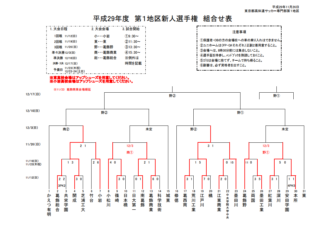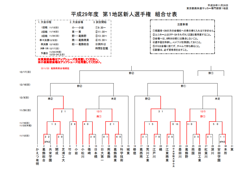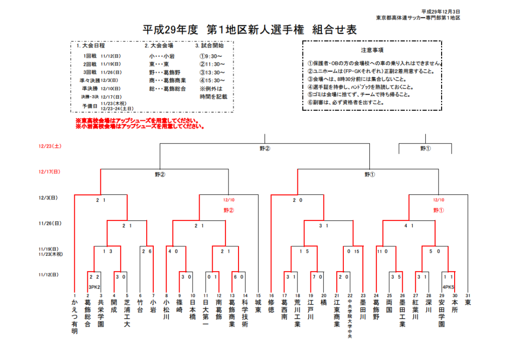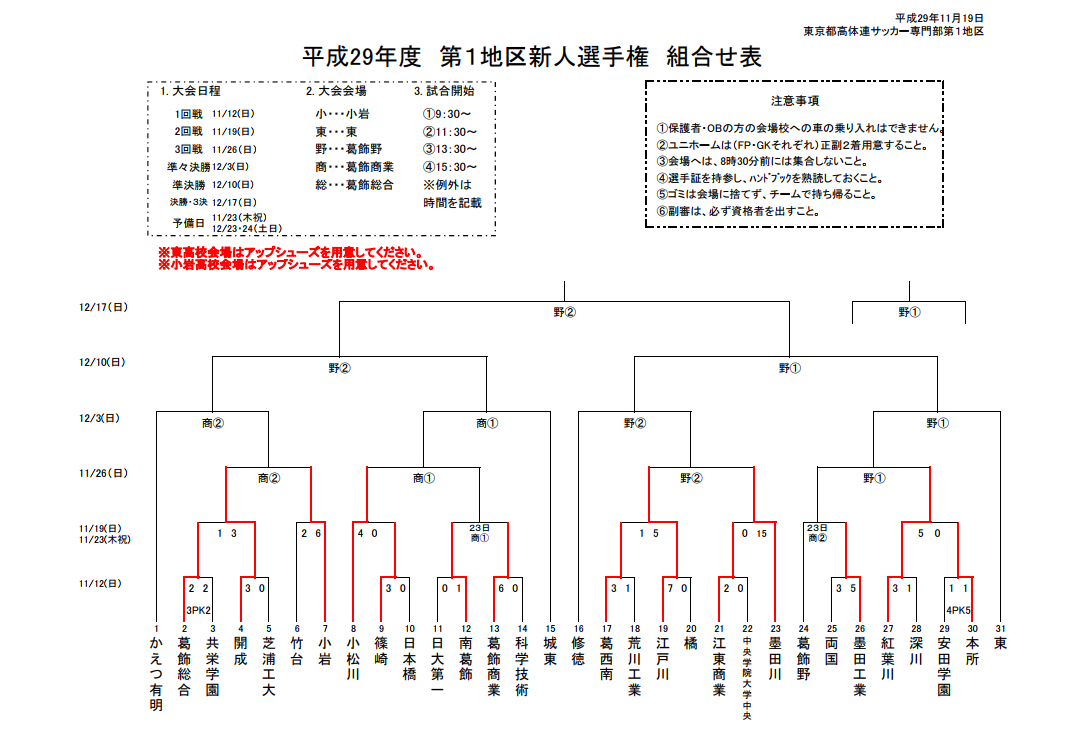 この16校に加え各地区の優勝、準優勝校が来春の関東大会予選に進出