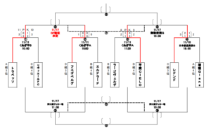 (1)17参加チームを4つのグループに分けて予選リーグを行う。各グループ上位2チーム決勝T進出