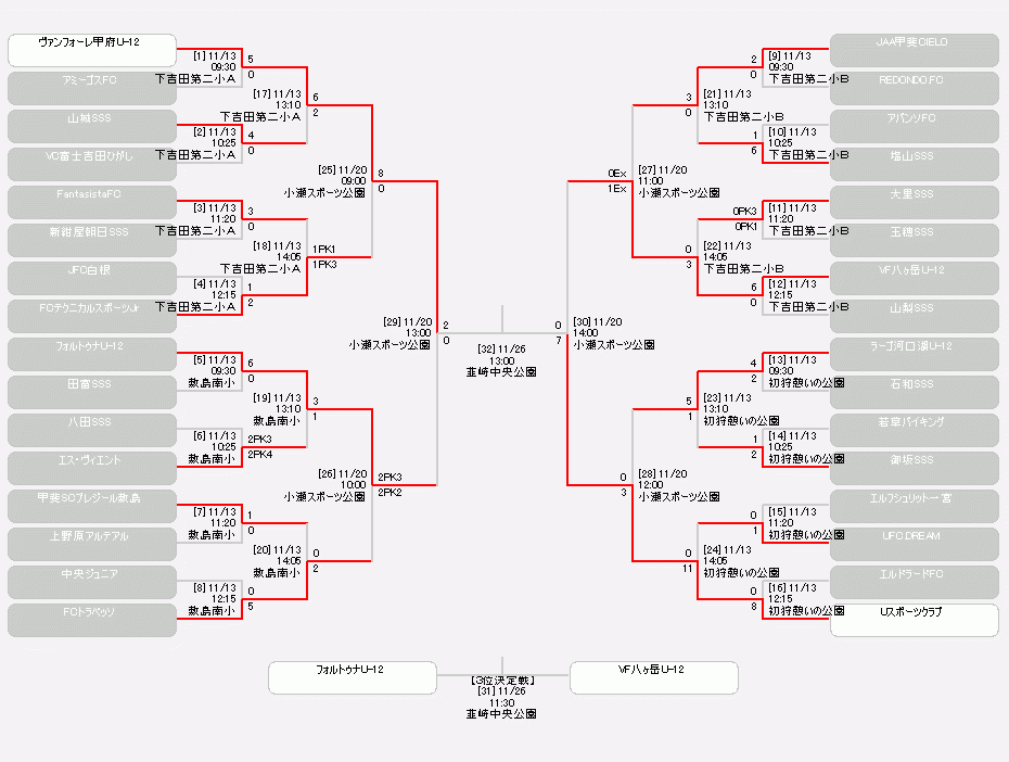 11月13日(日)予選ト-ナメント2日目 峡北1 峡中1 郡内東1 郡内南1 (4会場)