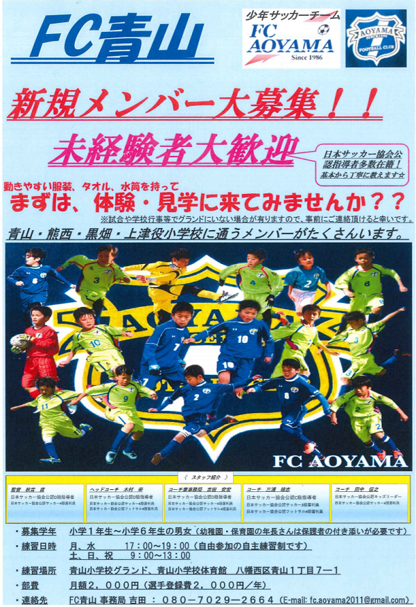 | 練習場所 | 青山小学校グラウンド(雨天時体育館) |