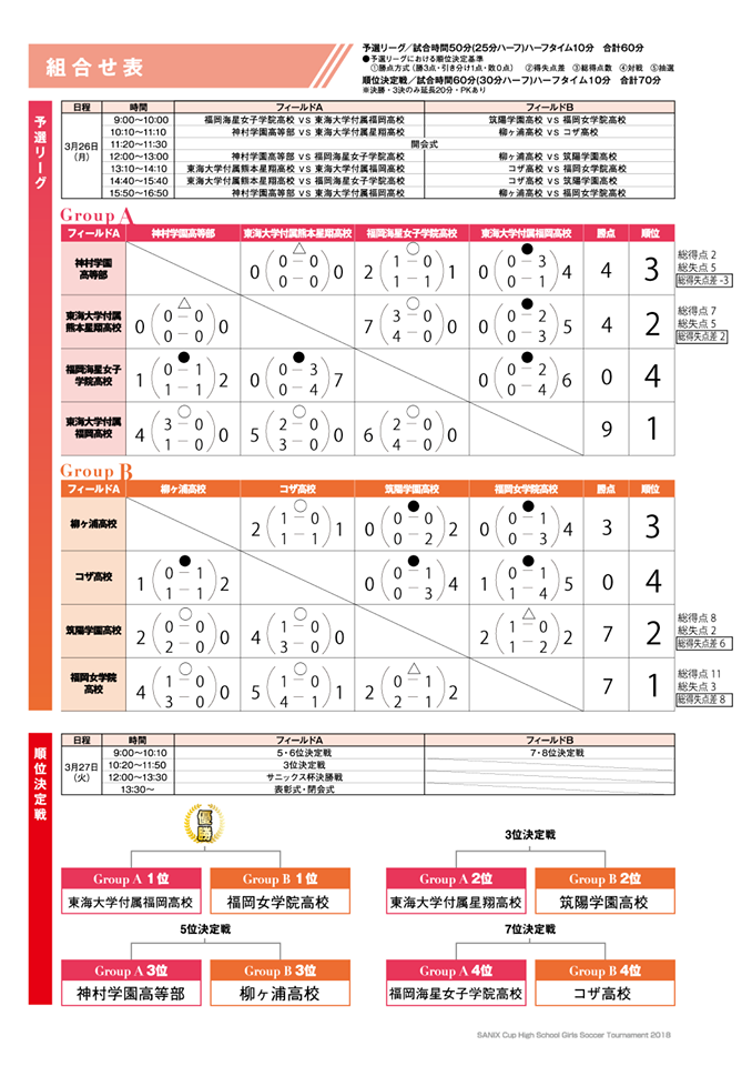 B.予選リーグ(4チーム2パート)・8チームによる順位決定戦でサニックス杯(各グループ1・2・3・4位)で対戦し、順位を決定する。