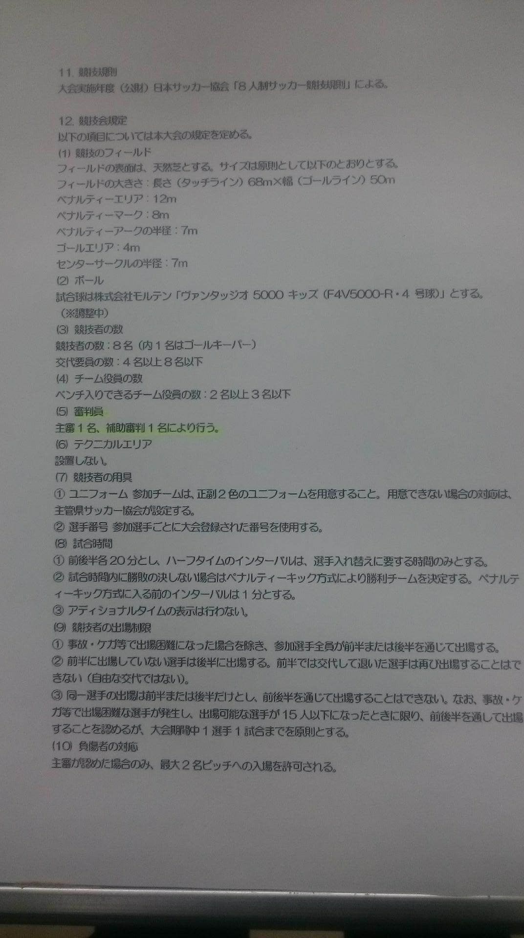 ・試合時間内に勝敗の決しない場合はペナルティーキック方式により勝利チームを決定する。ペナルティーキック方式に入る前のインターバルは1分とする。
