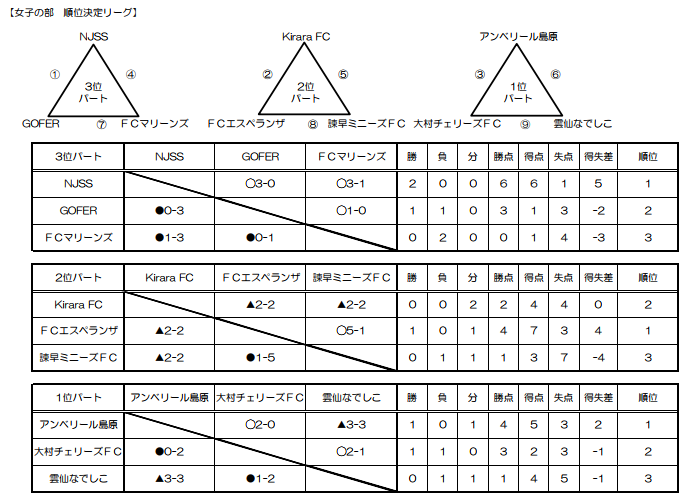 優 勝:アンベリール島原フィーユ準優勝:大村チェリーズ第3位:雲仙なでしこ