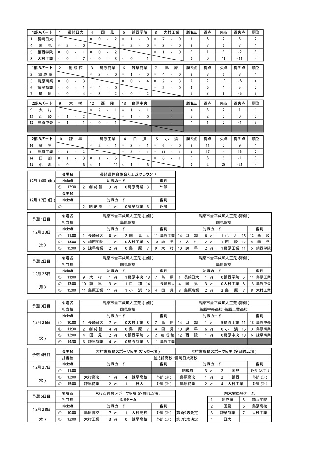 長崎県体育協会人工芝グラウンド、創成館高校グラウンド、島原市営平成町人工芝(山側)(海側)、大村古賀島スポーツ広場