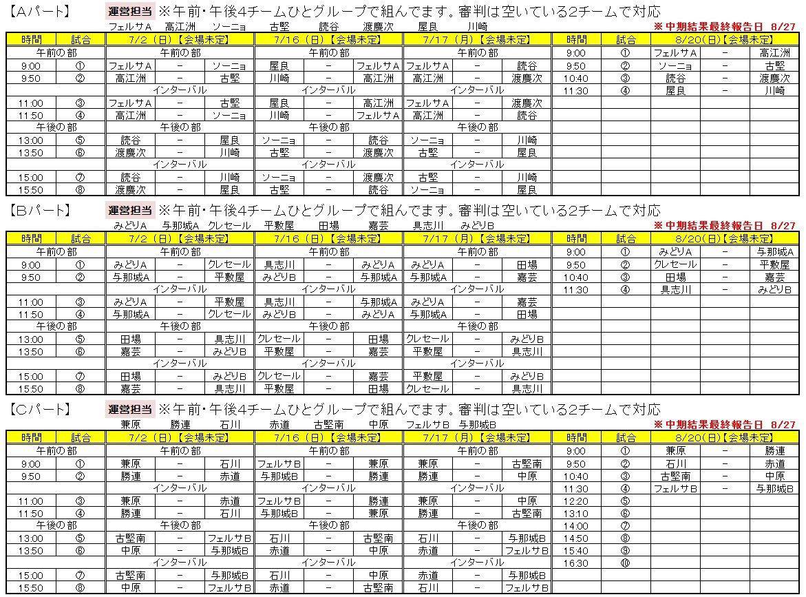 会場:古堅小学校、石川電力グランド、嘉芸小学校
