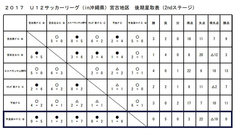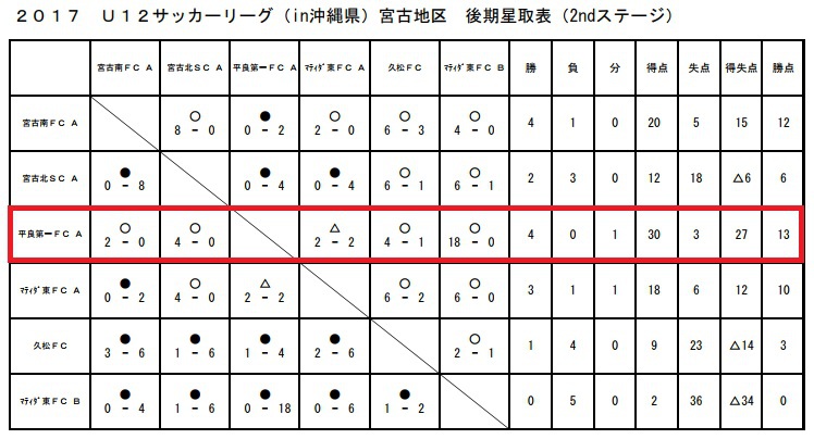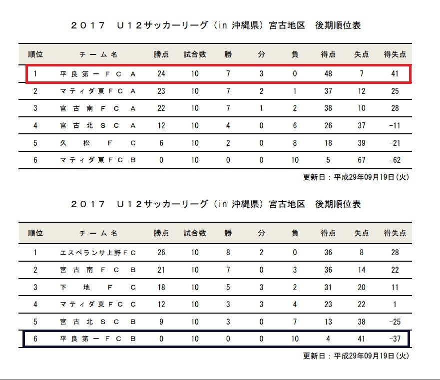 (参照:平良第一FCブログ) ・順位表 ・星取表1 ・星取表2 ・9/18結果表