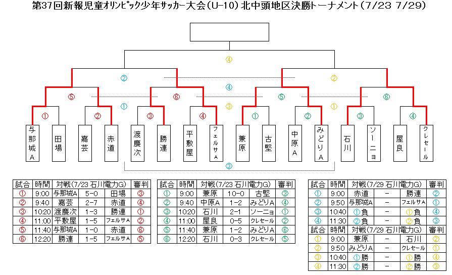 上位チームは8月12.13日に開催される第37回新報児童オリンピック少年サッカー大会県大会に出場できます。