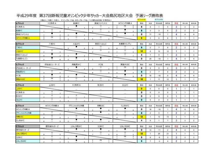 ※情報提供いただきました。ありがとうございます。 ・予選リーグ結果表 ・決勝リーグ対戦表