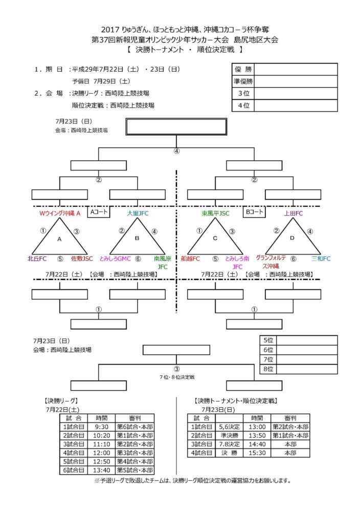 (参照:南風原JFCブログ) ・予選リーグ対戦表 ・決勝トーナメント対戦表