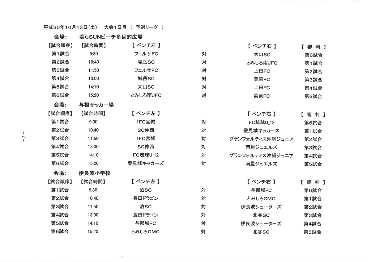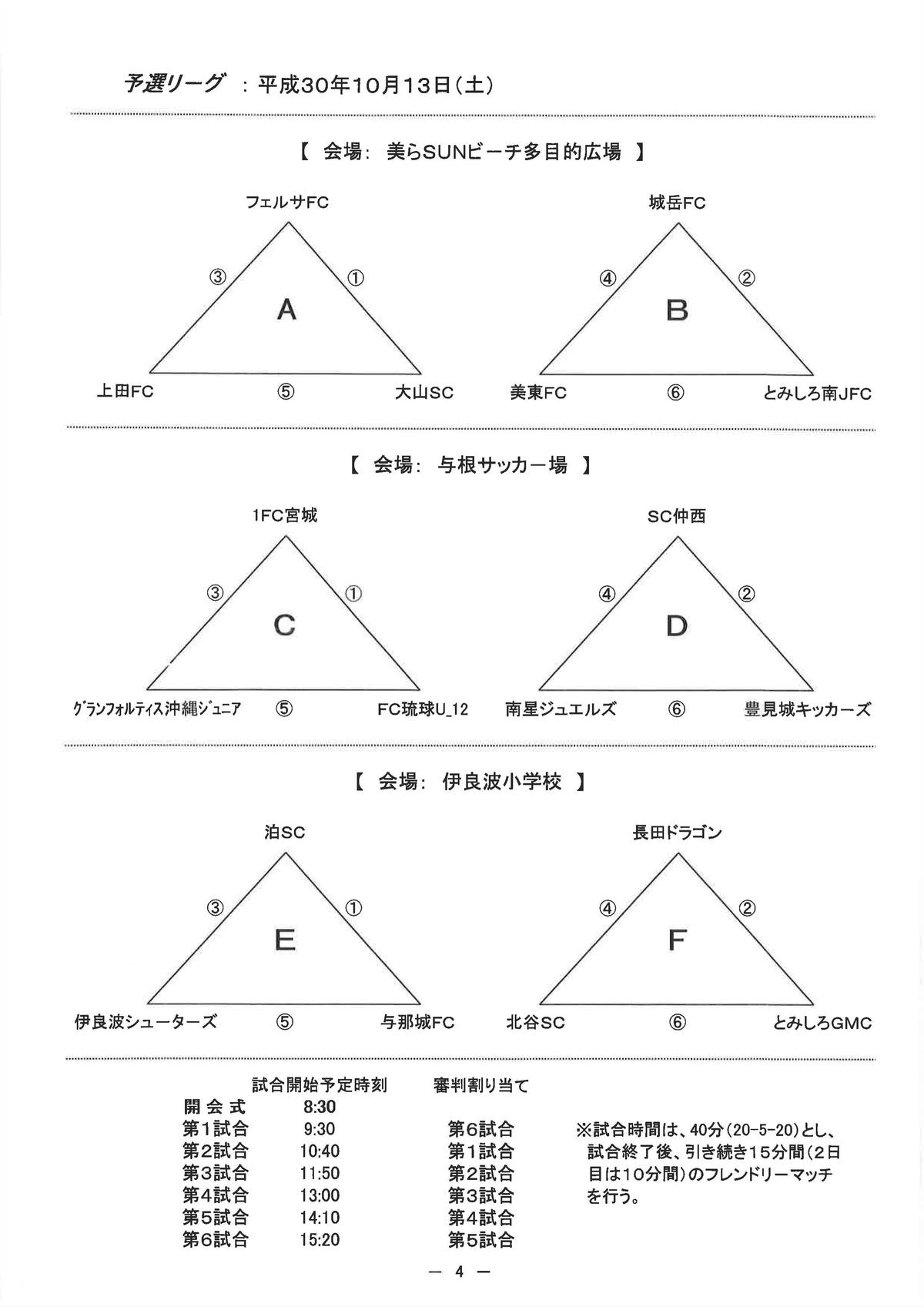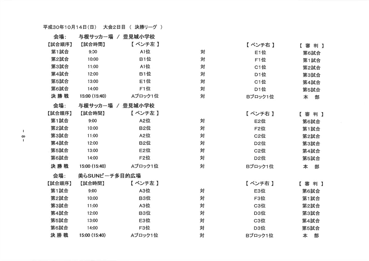 ・予選リーグ対戦表・決勝トーナメント対戦表(1、2)・タイムスケジュール(1日目、2日目)