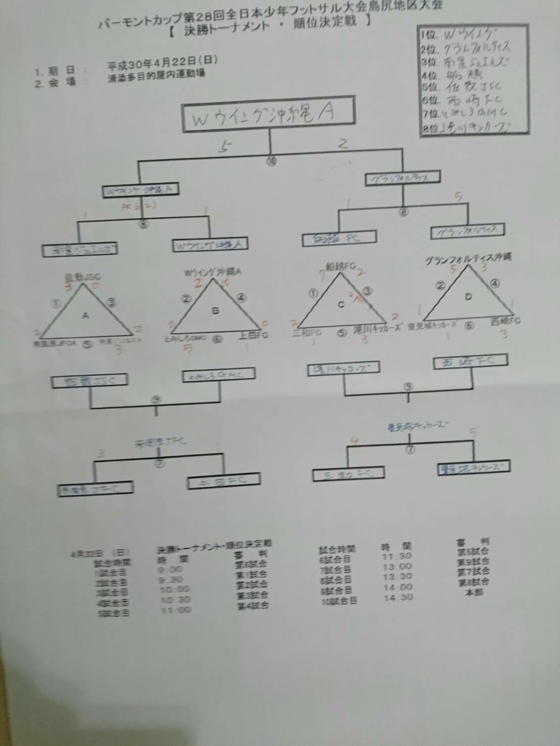 【結果】(県大会出場チーム) 優勝:Wウイング沖縄 準優勝:グランフォルティス沖縄 3位:南星ジュエルズ 4位:船越FC 5位:佐敷JSC 6位:西崎FC 7位:とみしろGMC 8位:港川キッカーズ