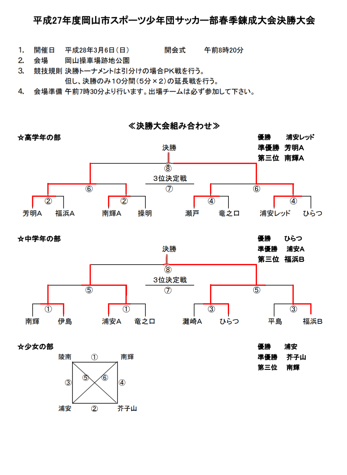 平成29年度 岡山市スポーツ少年団サッカー部春季錬成大会(中学年の部 U-10)
