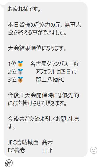 若鮎城西さん、FC養老さん、お誘いいただきありがとうございました。