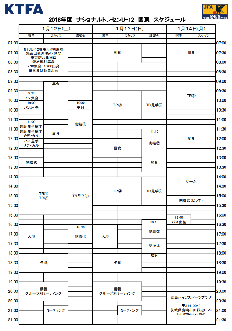 2019年1月12日(土)~14日(月祝)に鹿島ハイツスポーツプラザ(茨城県)にて行なわれる「2018年度 ナショナルトレセンU-12関東」に参加する、茨城県のメンバー
