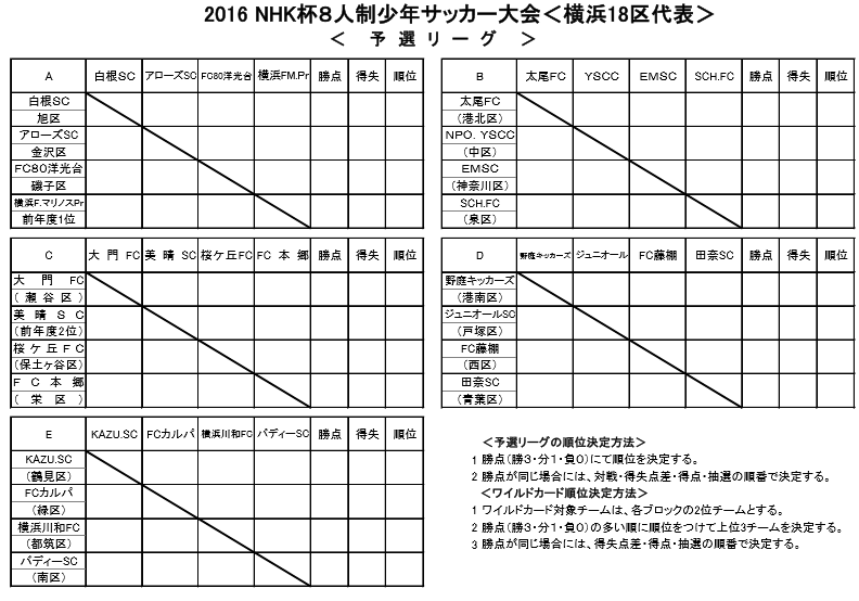 参照元:NHK杯ジュニアサッカー大会2016 ~8人制~ 大 会 要 項