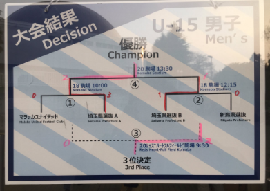 U-15男子優 勝:埼玉選抜A準優勝:埼玉選抜B第3位:新潟県選抜