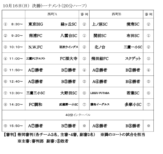 決勝リーグ・順位決定戦 10月16日(日)・10月23日(日)