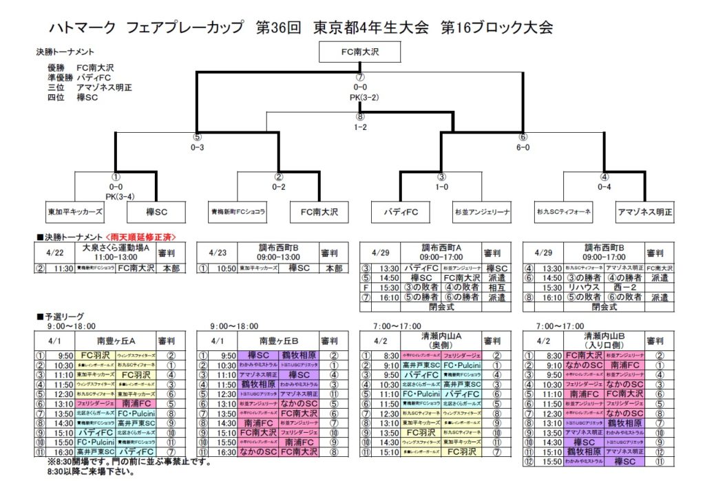 16ブロック大会決勝トーナメントの組合せは大会本部にて決定し、抽選はしない。