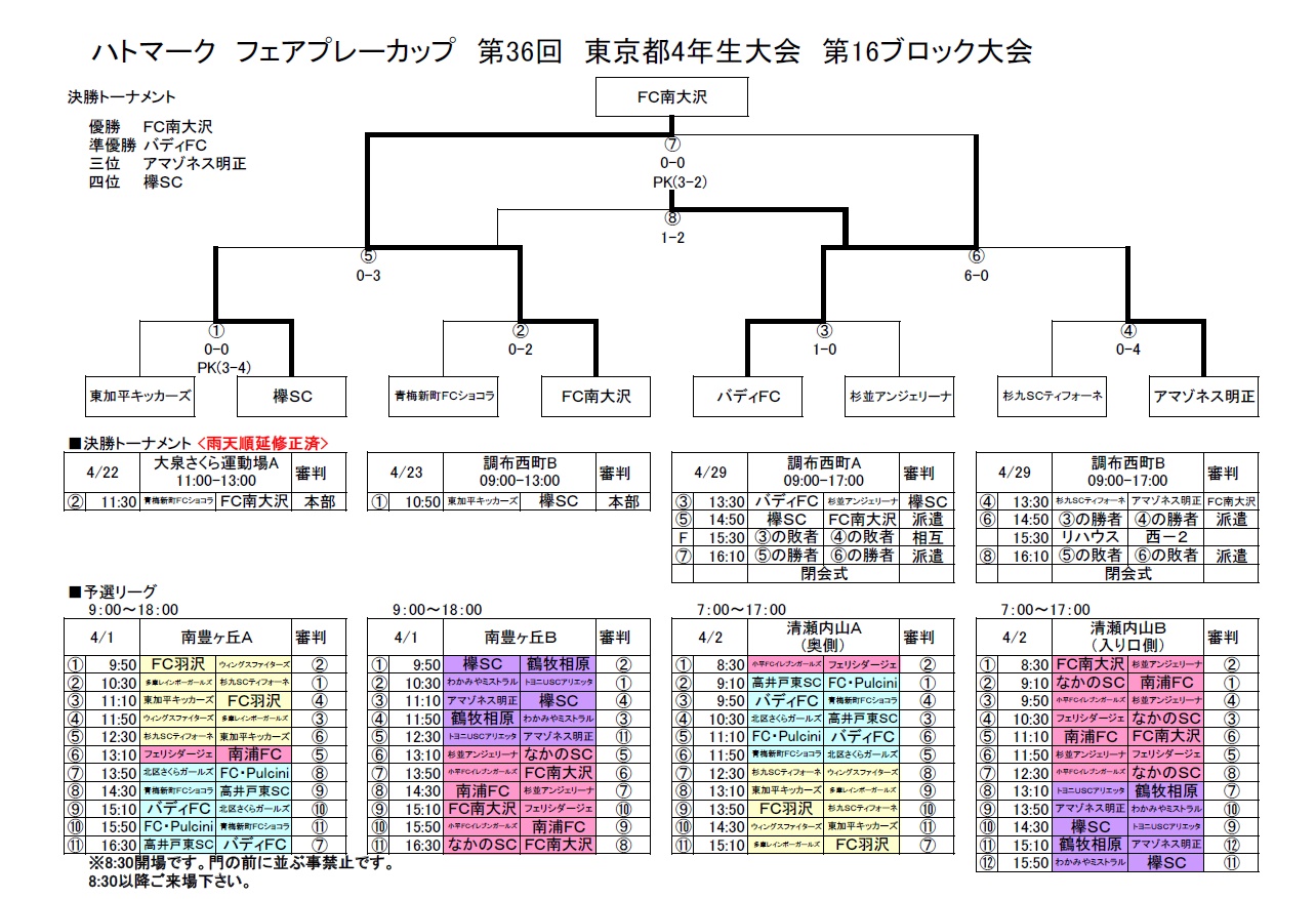 4月9日(日)決勝トーナメント ⇒ 雨で順延