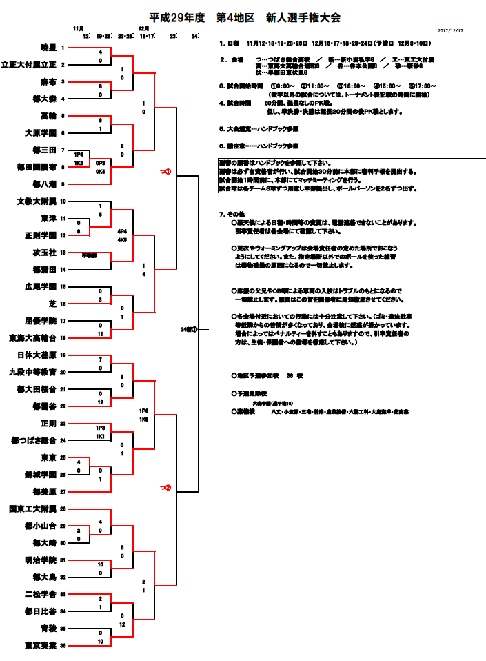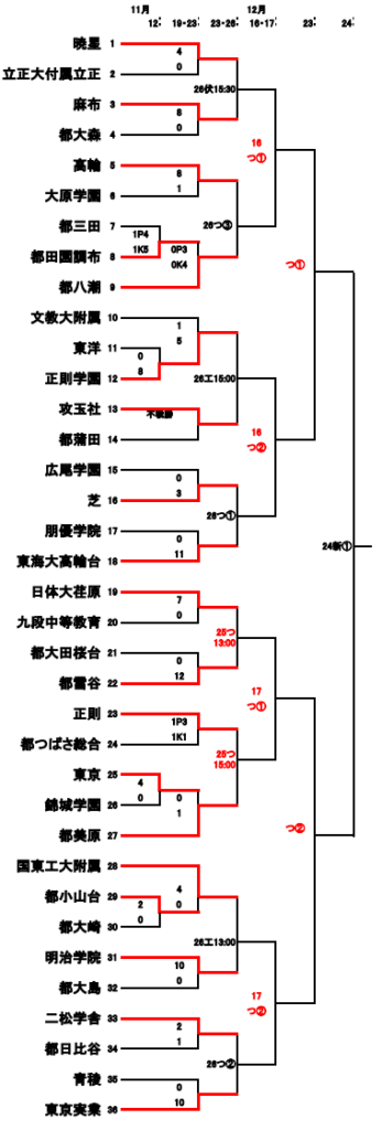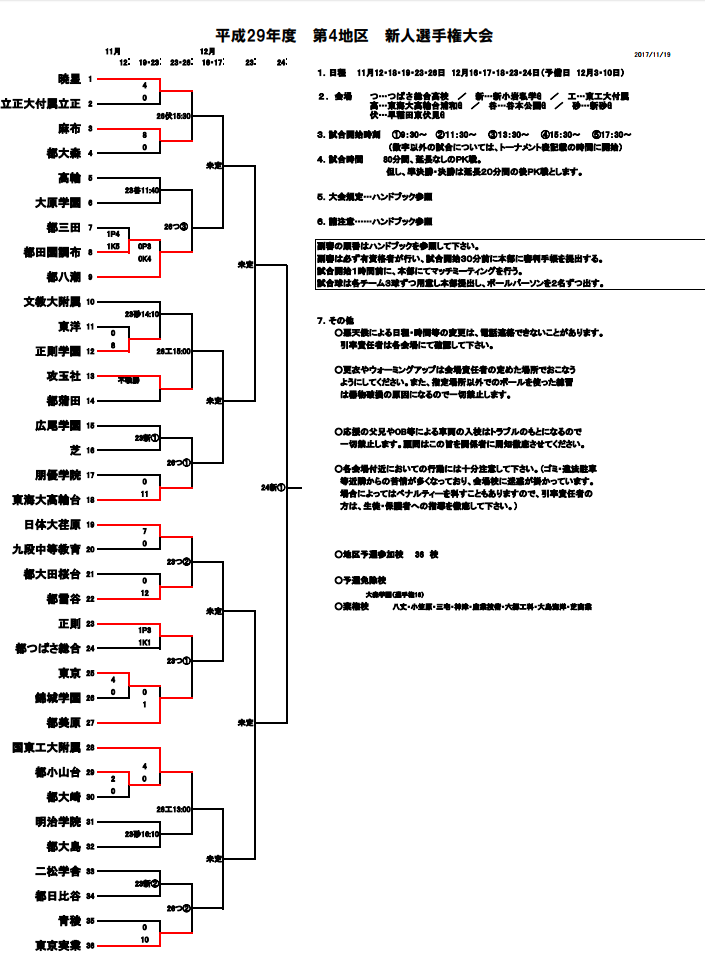 この16校に加え各地区の優勝、準優勝校が来春の関東大会予選に進出