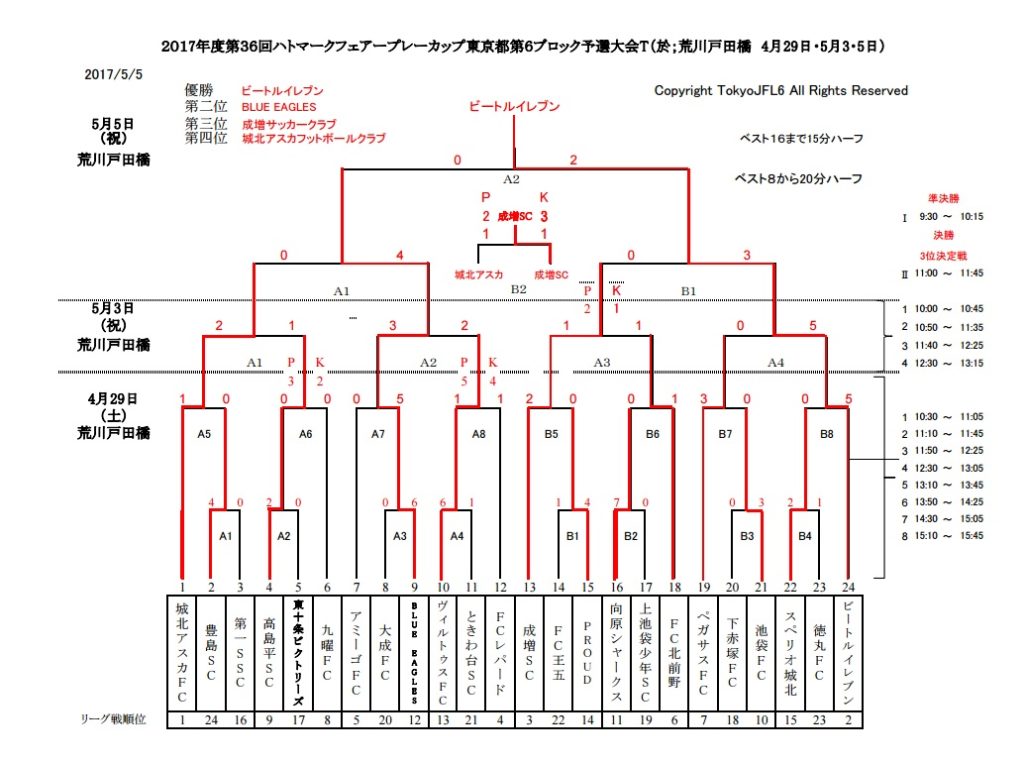 優 勝:ビートルイレブン準優勝:BLUE EAGLES第3位:成増サッカークラブ