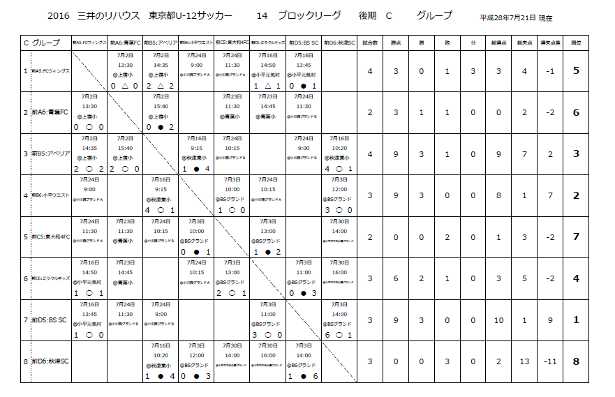 後期Cグループ 前期A~Dグループの5,6位の8チームで実施