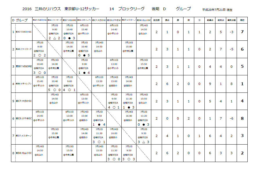 後期Dグループ 前期A~Dグループの7,8位の8チームで実施