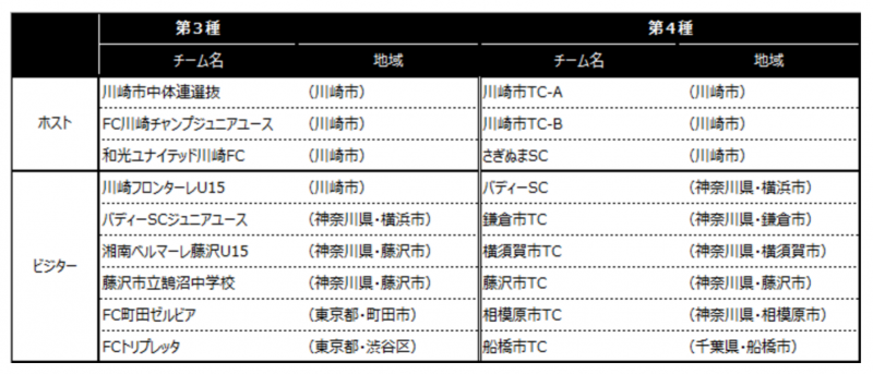 今年度は、関東近郊のJ下部をはじめとする強豪チームに加え、神奈川県中学校サッカー大会に優勝した鵠沼中学校が参加します。