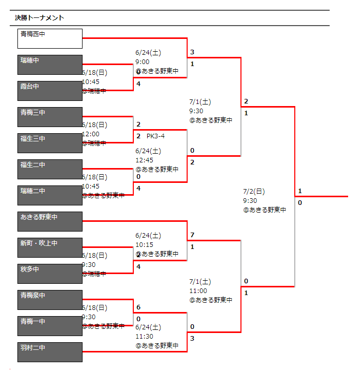 7/2 青梅西中学校 1-0 羽村第二中学校