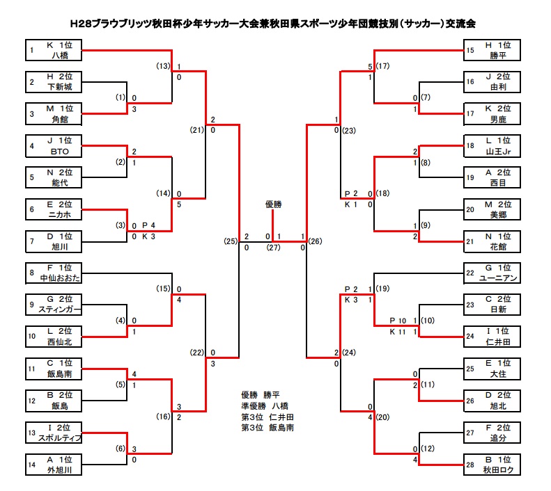 優勝:勝平SSS準優勝:八橋FC3位:仁井田レッドスターズ、飯島南FC