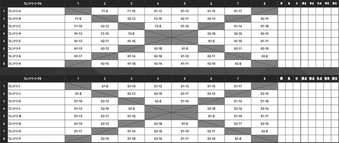 この1次リーグの各ブロック1・2位のチームは決勝トーナメント戦を行い、各ブロック3・4位のチームはフレンドリーリーグを行う。