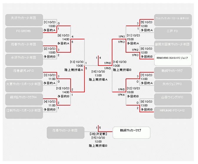 優 勝:RENUOVENS OGASA FCジュニア準優勝:花巻銀河FC.jr第3位:鵜飼サッカークラブ第4位:花巻サッカー少年団