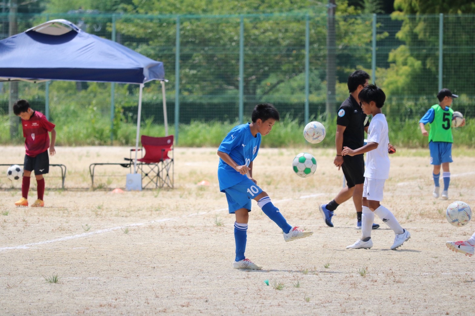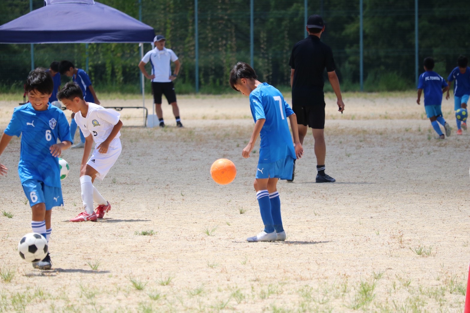 リフティング王チャレンジやドリブル競争といったチーム対抗のレクリエーションもあり、