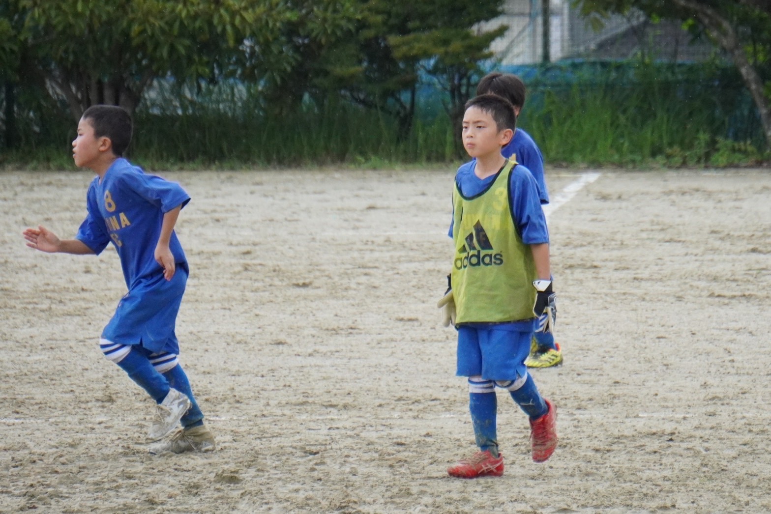 4部の選手達(小3から小1)、降り頻る雨の中、泥んこになりながらも全力プレーを見せてくれました。