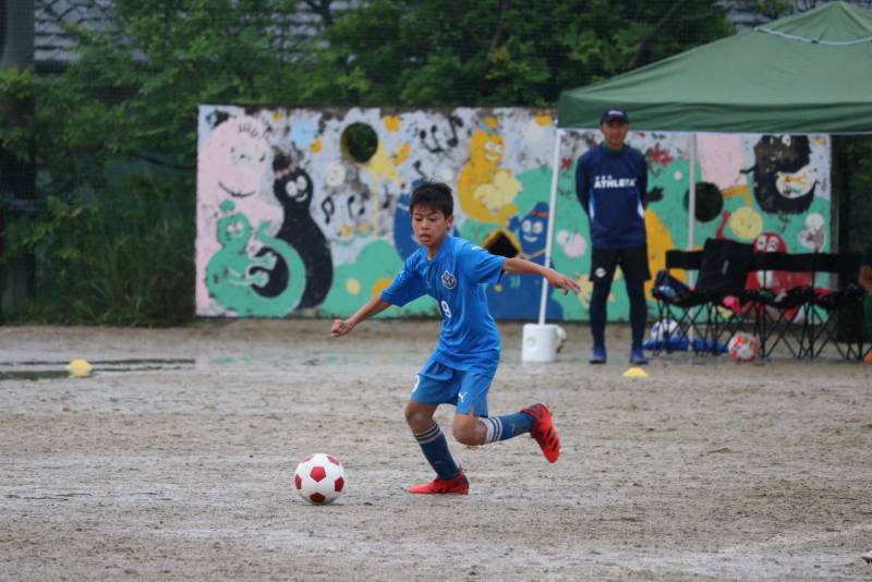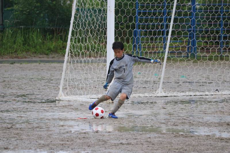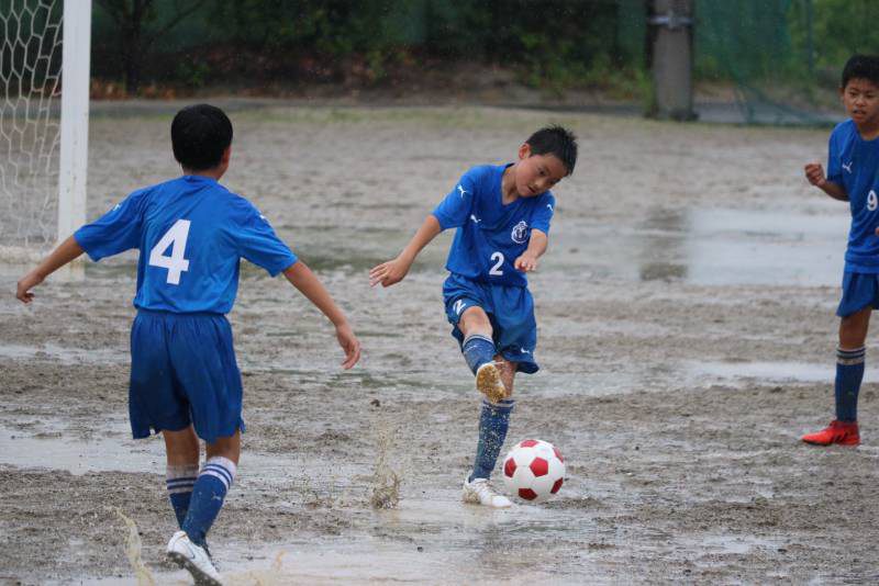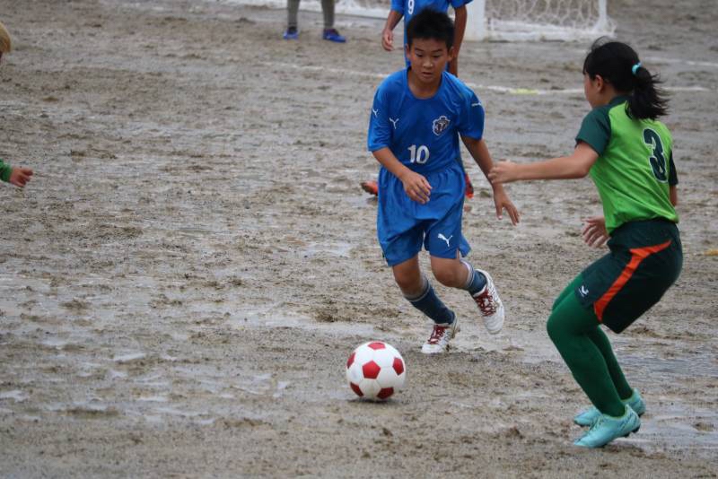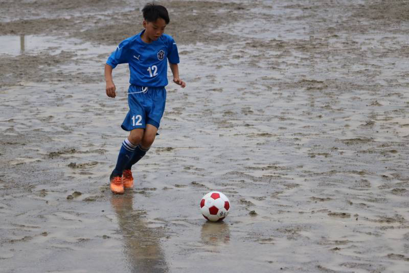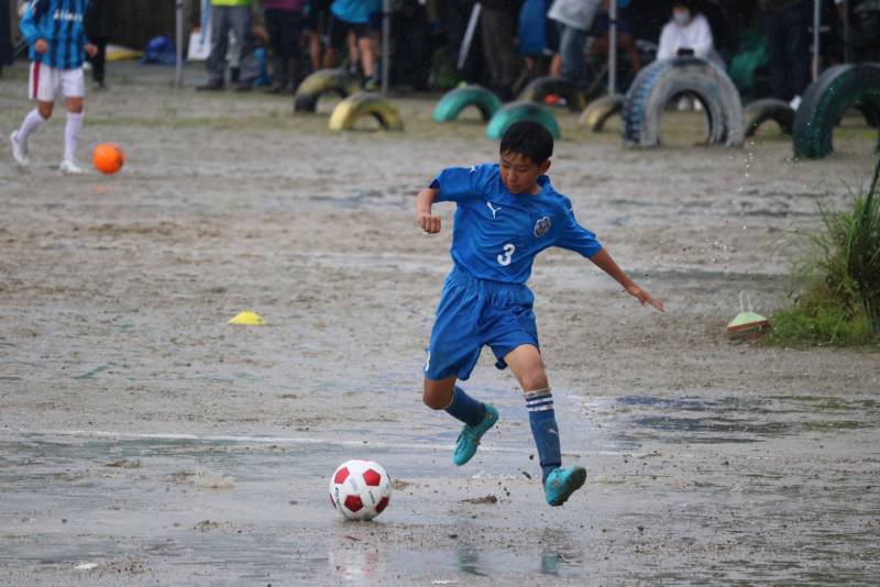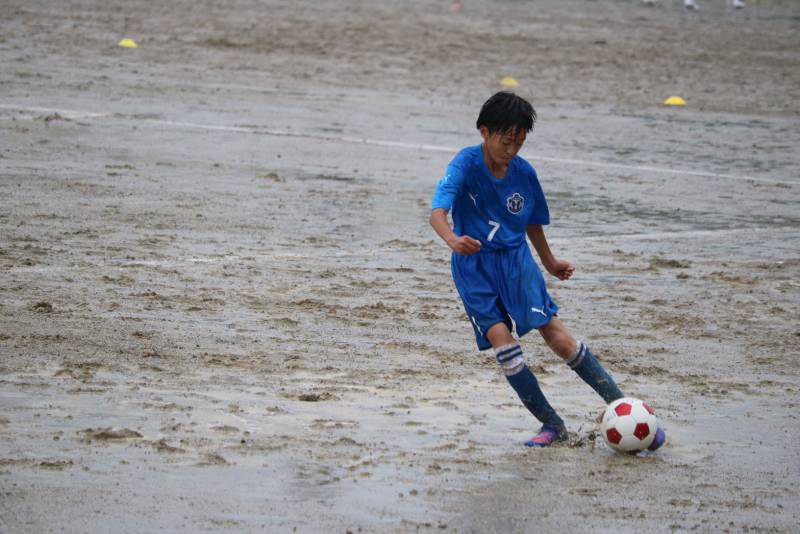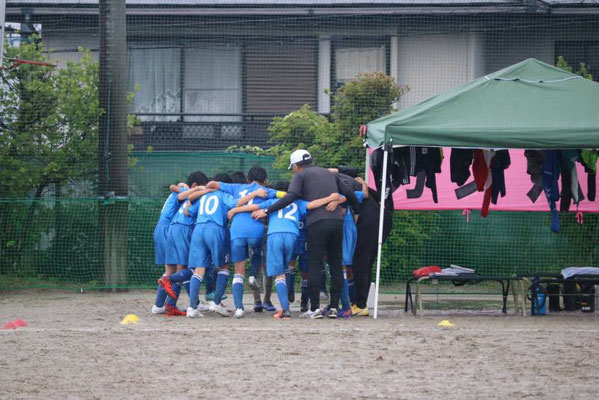 昨日から降り続く雨でグランドはドロドロ、パスもドリブルもシュートも水たまりで止まってしまう状況の中、泥だらけになりながらも選手達は懸命に走り、両チームとも一進一退の攻防戦を繰り広げました。最後の最後で力負けしてしまいましたが、自分たちの今後の課題が見えた試合になった気がします。