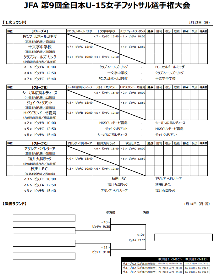 ②決勝ラウンド:6分間(前後半各3分間)の延長戦を行い、決しない場合はPK方式により勝敗を決定する。