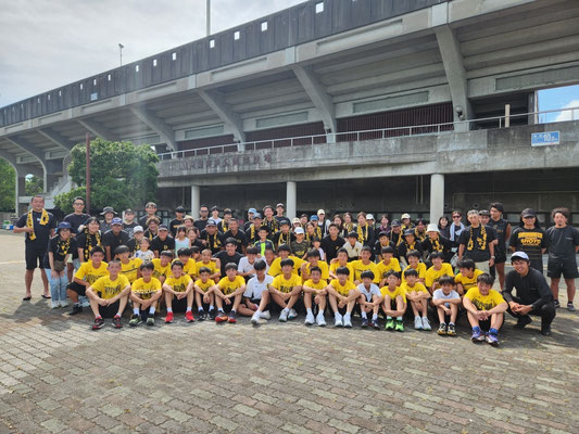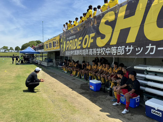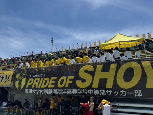 ピッチの選手、ベンチの選手、メンバー外の選手、後輩達(中1.2年生)本当に猛暑の中、戦いきりました。試合終了のホイッスルが鳴る最後まで1点を取りに行く姿勢、声をからしてメンバーを鼓舞する応援、現役保護者、卒業生、卒業生保護者と本当にたくさんの翔洋ファミリーが浜松の地で一丸となって戦いましたが、悔しい結果となりました。
