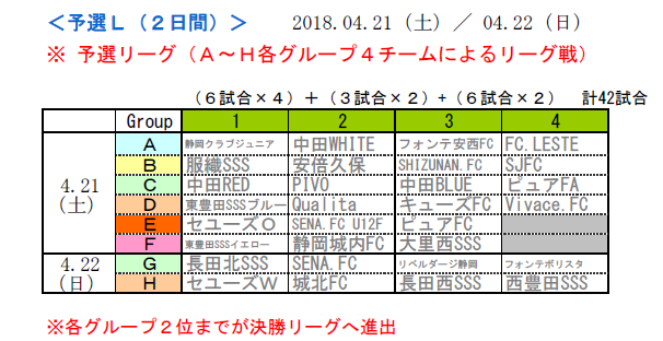 ・上位4チームは、県大会(6/17・エコパアリーナ)出場の権利を得る。